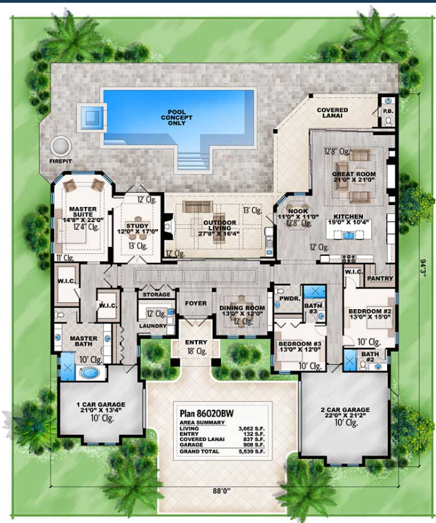 3-Story Coastal Contemporary Home Plan with Elevator - 4,619 sq ft